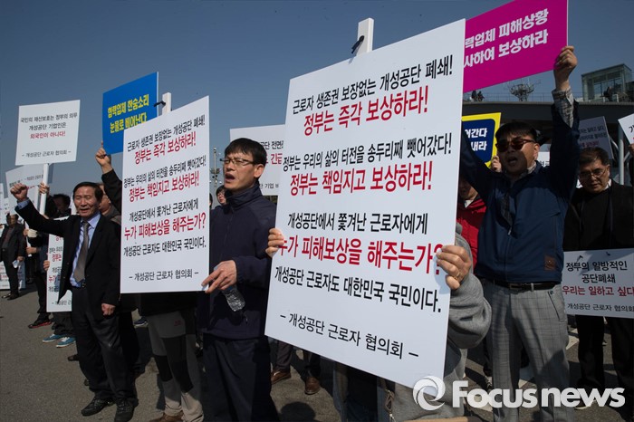 | △ 피해보상 촉구하는 개성공단 근로자들 |