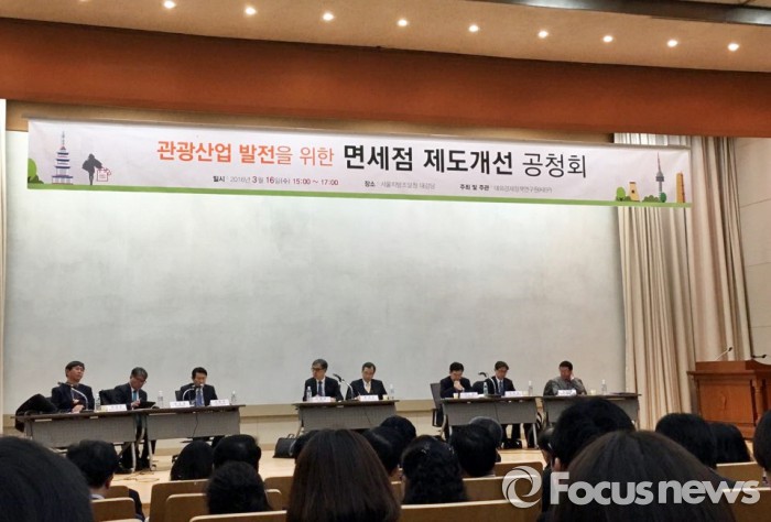 기획재정부는 16일 오후 서울지방조달청에서 관광산업 발전을위한 면세점 제도개선 공청회를 열었다. 이날 토론은 현행 5년인 특허기간을 10년으로 연장하는 것에 초점이 맞춰졌다.