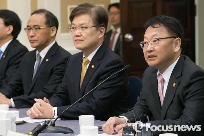 (서울=포커스뉴스) 유일호(오른쪽) 경제부총리 겸 기획재정부 장관이 17일 오전 서울 여의도 국회에서 열린 규제프리존특별법 제정을 위한 당정협의에 참석해, 모두발언하고 있다.