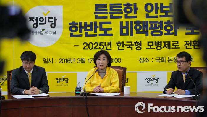 | △ 국방정책기조 및 대표공약 발표하는 정의당 |