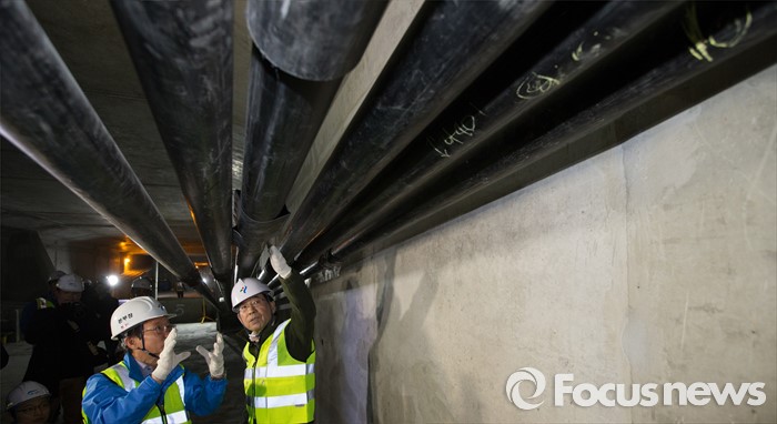 (서울=포커스뉴스) 박원순 서울시장이 17일 오전 통행재개를 앞둔 서울 내부순환로를 점검하기 위해 정릉천고가 교량 상부구조물 내부에서 시설관리공단 관계자와 함께 일부 교체를 마친을 텐던 및 부품을 살펴보고 있다.