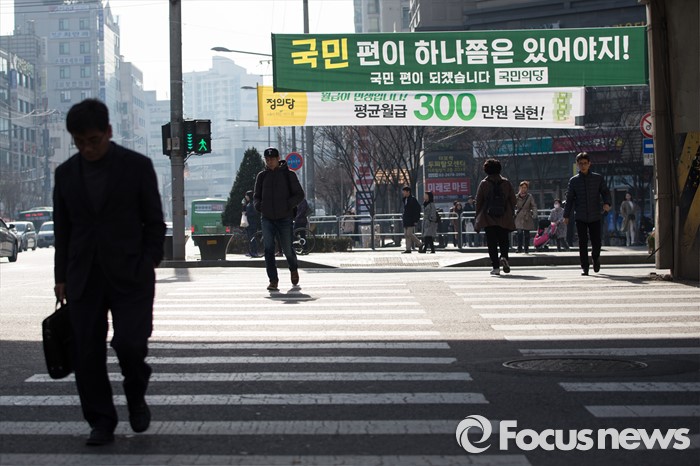 (서울=포커스뉴스) 17일 오후 서울 영등포구 당산역 주변에 다양한 주제를 담고 있는 각 정당들의 정책 홍보 현수막이 걸려 있다.