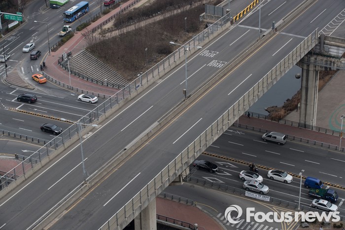 (서울=포커스뉴스) 상부를 지지하던 일부 텐던(대형케이블)이 손상된 것을 발견해 지난달 22일부터 차량 통행이 전면 중단됐던 서울 내부순환로 정릉천고가가 오는 19일부터 통행이 재개된다. 사진은 17일 통제로 텅빈 모습의 서울 내부순환로 정릉천고가.