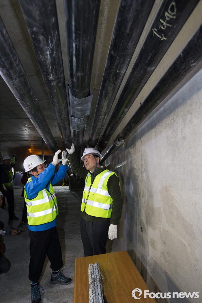 (서울=포커스뉴스) 박원순 서울시장이 17일 오전 통행재개를 앞둔 서울 내부순환로를 점검하기 위해 정릉천고가 교량 상부구조물 내부에서 시설관리공단 관계자와 함께 일부 교체를 마친을 텐던 및 부품을 살펴보고 있다.