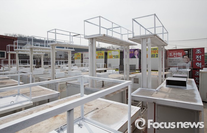 (김포=포커스뉴스) 4·13 총선을 앞둔 17일 오전 경기도 김포시 대곶면의 한 차량 구조물 제작업체 야적장에 선거 유세차량 구조물이 적재돼있다.