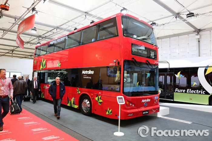 세계최초의 2층 전기버스 제조사는 중국 선전에 자리한 비야디자동차다. 비야디자동차는 2015 버스월드에서 이 버스를 대중에게 처음 공개했다. 버스는 대당 35만 파운드(약 5억8000만 원)이다.영국 런던 시내를 누비게 될 세계 최초의 2층 전기버스다. 버스 제조사는 비야디자동차다. 버스 가격은 대당 5억8000만 원이다. 런던 교통공사는 이 버스가 탄소 배출을 줄이고 런던 대기오염지수를 떨어뜨릴 것으로 기대하고 있다. <사진출처=비야디자동차> 2016.03.17 손성배 기자