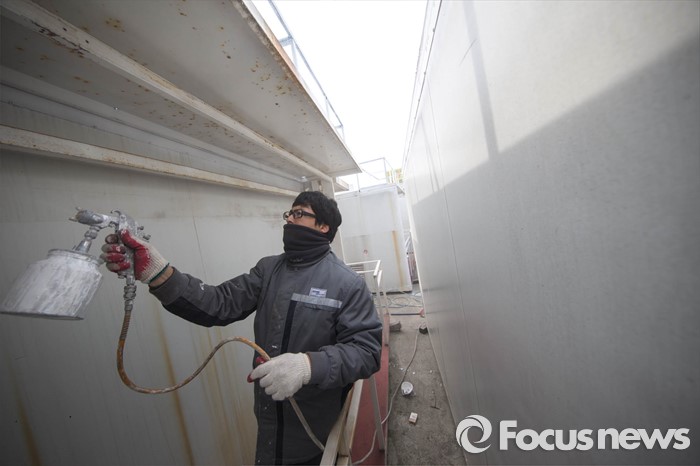 (김포=포커스뉴스) 4.13 총선을 앞둔 17일 오전 경기도 김포시에 위치한 차량구조물 제작업체 야적장에서 한 근로자가 선거 유세차량에 쓰일 구조물들을 정비하고 있다.