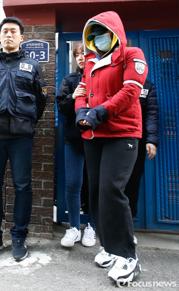 (부천=포커스뉴스) 생후 2개월 영아를 폭행해 숨지게 한 어머니 이모(23)씨가 17일 오후 경기도 부천시 오정구 자택에서 현장검증을 마친 후 나서고 있다.