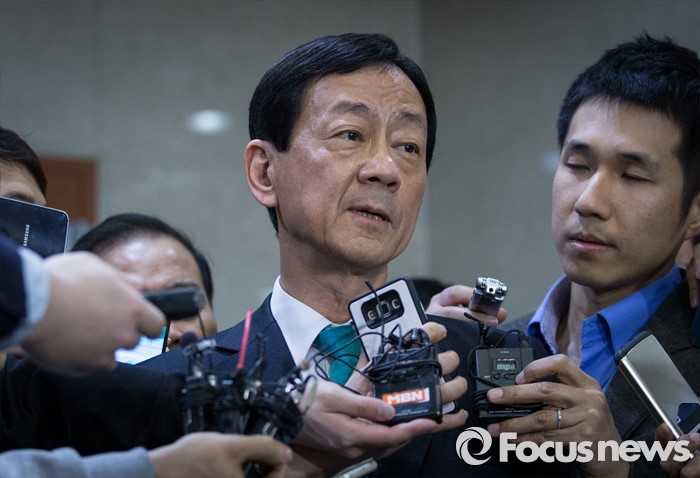 (서울=포커스뉴스) 공천에서 배제 된 새누리당 3선 중진 진영 의원이 17일 오후 서울 여의도 국회 정론관에서 탈당 기자회견을 마친 후 기자들의 질문을 받고 있다.