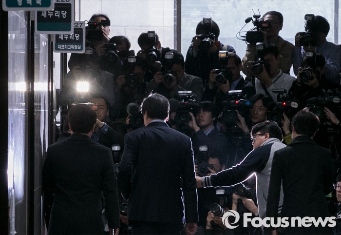 (서울=포커스뉴스) 김무성 새누리당 대표가 18일 오전 서울 여의도 국회에서 비공개 최고위원회의에 참석하고 있다.
