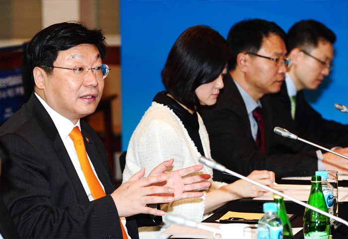 이날 간담회에는 장원기 중국삼성 사장, 이병호 현대자동차그룹 부사장, 조영호 SK 부사장, 이철희 CJ그룹 중국본사 부사장, 한성희 POSCO CHINA 전무, 지성규 하나은행 법인장, 이호경 대우인터내셔널 상무, 송철호 북경한미약품 부회장, 최 선 미샤화장품 총경리, 정광영 KOTRA 중국지역본부장이 참석했다. <사진제공=산업통상자원부>