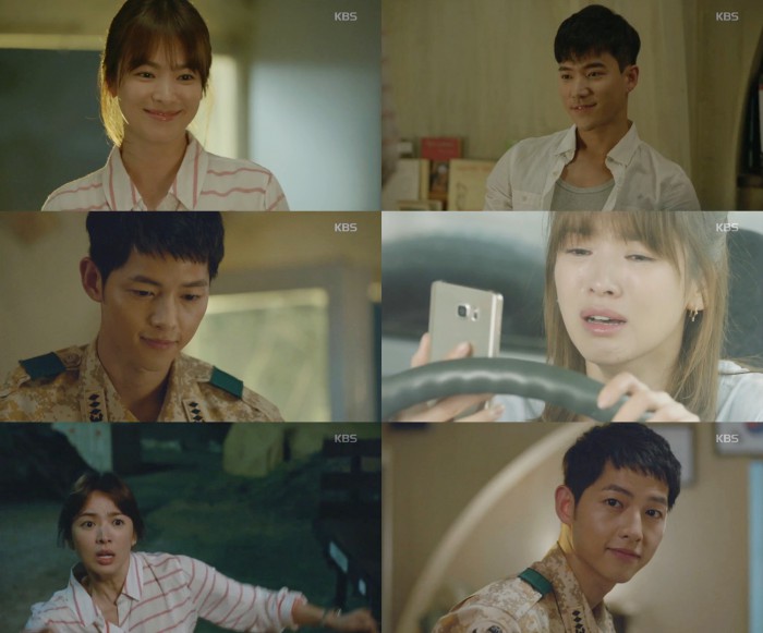 이날 방송에서는 두 번째 한국행을 포기한 강모연(송혜교 분)이 유시진(송중기 분)을 향한 마음을 고백했다.17일 방송된 KBS2 수목드라마 '태양의 후예'가 시청률 28.8%를 기록했다. 사진은 드라마 장면 모음.<사진출처=KBS>
