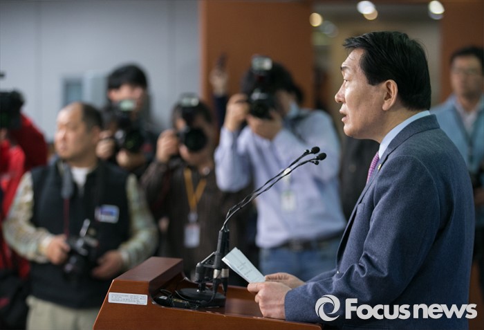 (서울=포커스뉴스) 공천 탈락한 안상수 새누리당 의원이 18일 오전 서울 여의도 국회 정론관에서 탈당 및 20대 총선 무소속 출마 기자회견을 하고 있다.