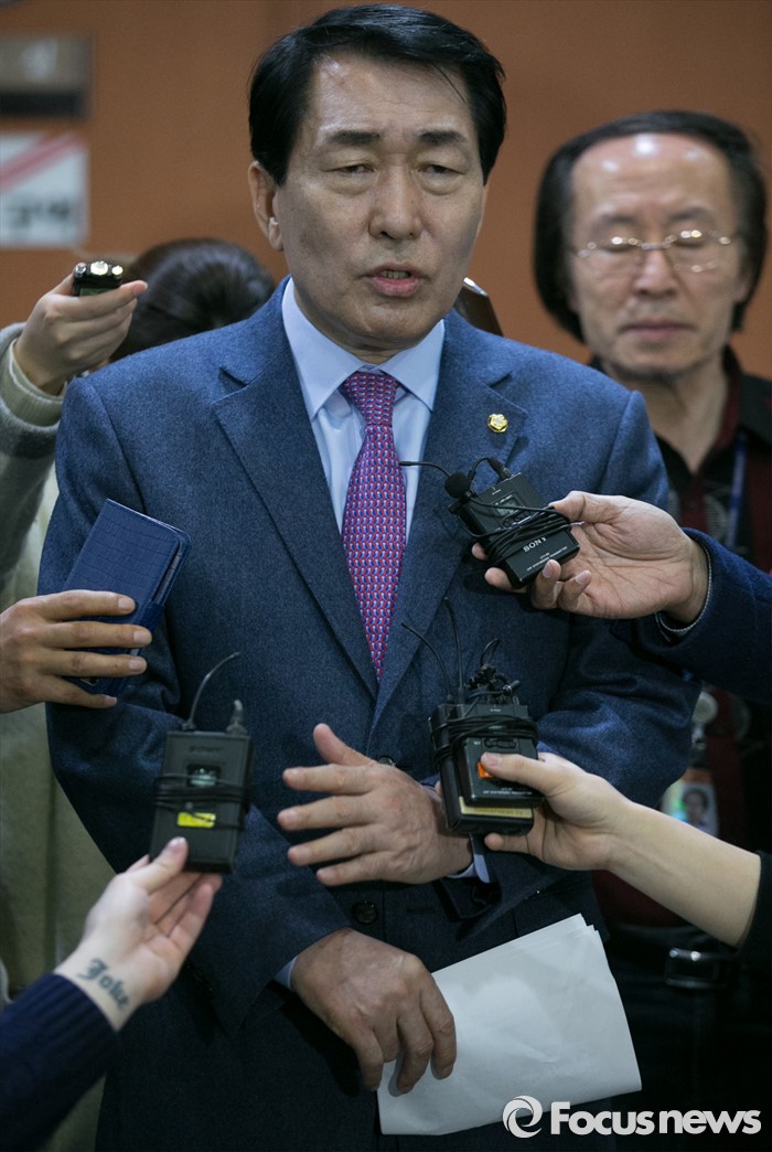 (서울=포커스뉴스) 공천 탈락한 안상수 새누리당 의원이 18일 오전 서울 여의도 국회 정론관에서 탈당 및 20대 총선 무소속 출마 기자회견을 하고 있다.