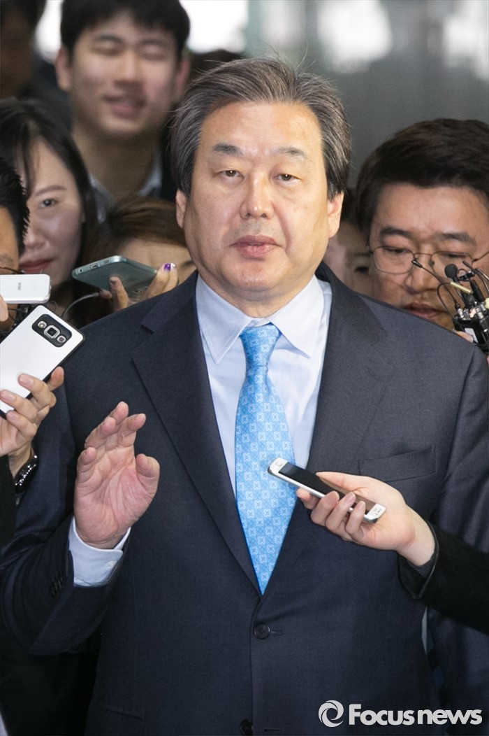 (서울=포커스뉴스) 김무성 새누리당 대표가 18일 오전 서울 여의도 국회에서 열린 비공개 최고위원회의를 마친 뒤, 기자들의 질문을 들으며 밖으로 나가고 있다.
