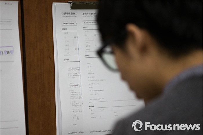(서울=포커스뉴스) 새학기를 맞은 18일 오전 서울 소재의 한 대학교 학생이 교내 게시판에 붙은 취업 관련 게시물들을 살펴보고 있다.