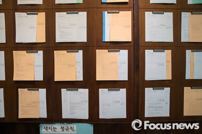 (서울=포커스뉴스) 새학기를 맞은 18일 오전 서울 소재의 한 대학교 게시판에 취업 관련 게시물들이 붙어 있다