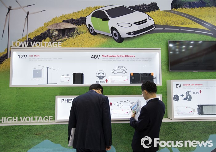 (제주=포커스뉴스) 18일 오전 제주 서귀포 제주국제컨벤션센터에서 열린 2016 국제전기자동차엑스포에서 관람객들이 전시장을 관람하고 있다.