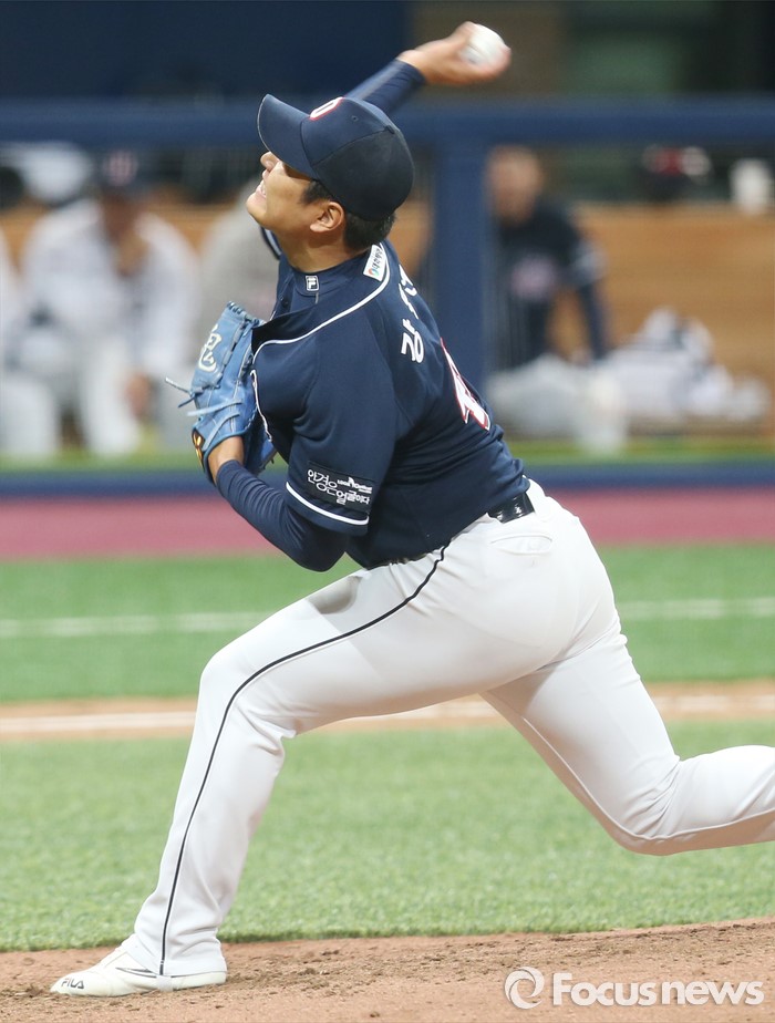 (서울=포커스뉴스) 18일 서울 고척스카이돔에서 열린 2016 프로야구 시범경기 두산-넥센 경기 6회말 두산 투수 강동연이 구원 등판해 힘차게 투구하고 있다.