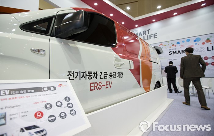 (제주=포커스뉴스) 18일 오전 제주 서귀포 제주국제컨벤션센터에서 열리고 있는 2016 국제전기자동차엑스포에 '전기자동차 긴급 충전 차량'(ERS-EV)이 전시되어 있다.