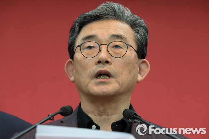 (서울=포커스뉴스) 이한구 공천관리위원장이 박종희 공관위원과 함께 19일 오후 서울 영등포구 새누리당사에서 총선 공천을 위한 여론조사 경선 결과를 발표하고 있다.
