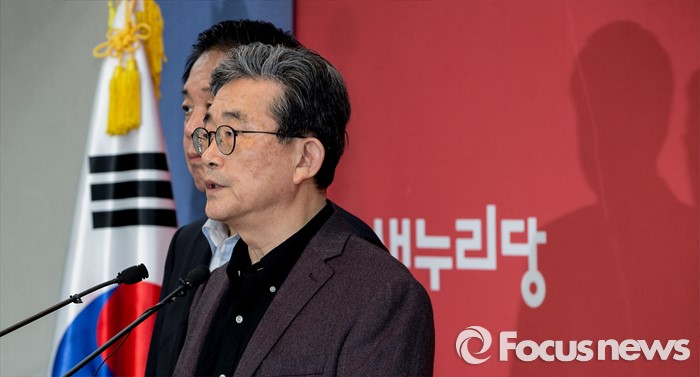 (서울=포커스뉴스) 이한구 공천관리위원장이 박종희 공관위원과 함께 19일 오후 서울 영등포구 새누리당사에서 총선 공천을 위한 여론조사 경선 결과를 발표하고 있다.