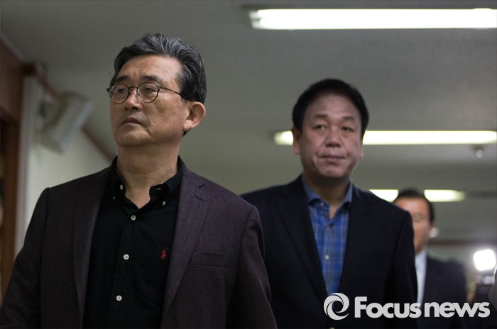 (서울=포커스뉴스) 새누리당 이한구 공관위원장이 20일 오후 제20대 총선 공천경선지역 여론조사 발표를 위해 여의도에 위치한 새누리당 당사 기자회견장으로 들어서고 있다.