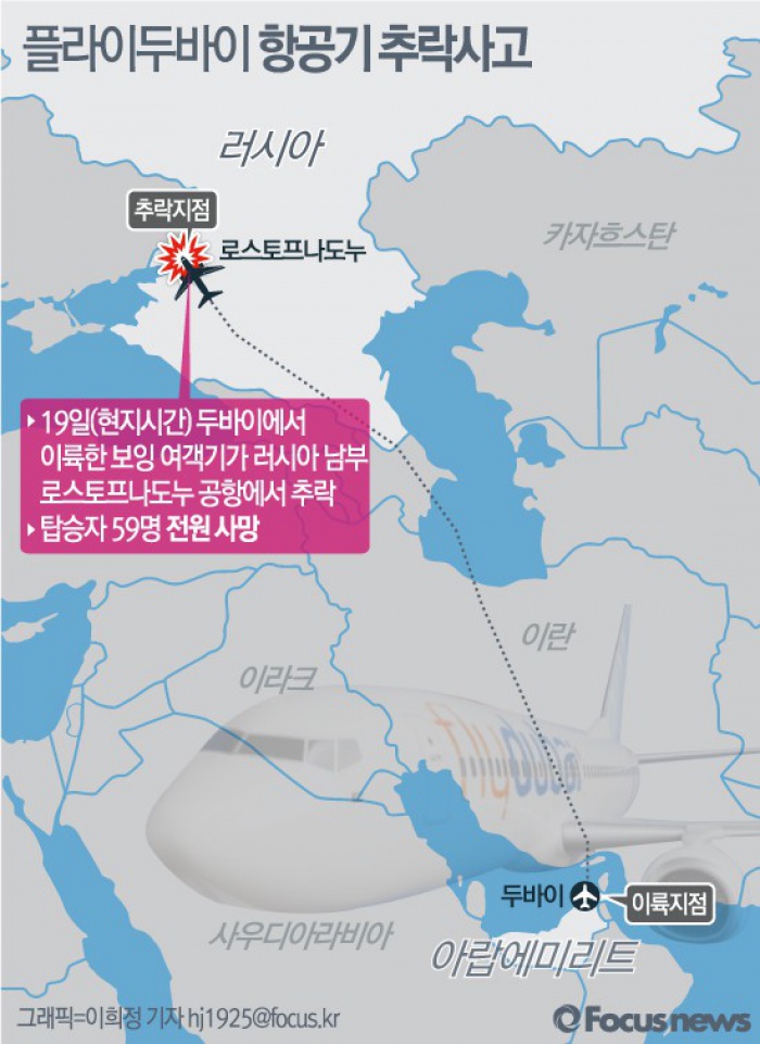 (서울=포커스뉴스) 19일(현지시간) 러시아 로스토프나도누 공항에서 플라이두바이 소속 항공기가 추락해 62명이 사망했다.