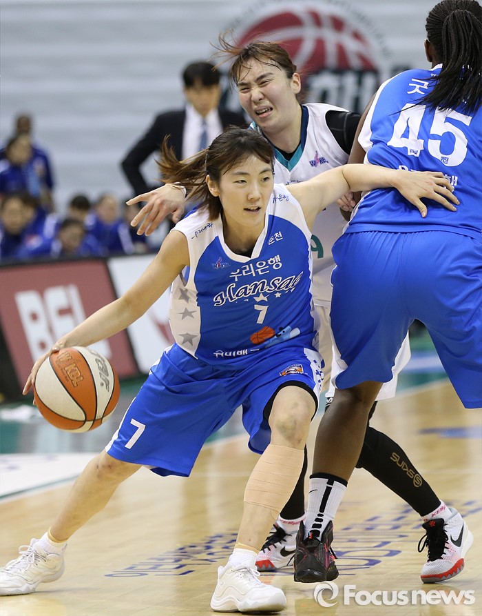 우리은행은 챔피언결정전 내내 공수에서 KEB하나은행을 압도했다. 우리은행 임영희(11득점)-박혜진(14득점)-양지희(8득점) 등 MVP 삼각편대의 위력은 그야말로 무적이었다. 외국인선수 스트릭렌(5득점)과 굿렛(13득점)을 조연으로 만들 정도였다. 3차전에서는 이승아(15득점)까지 득점에 가세하며 득점 부담을 줄여줬다.