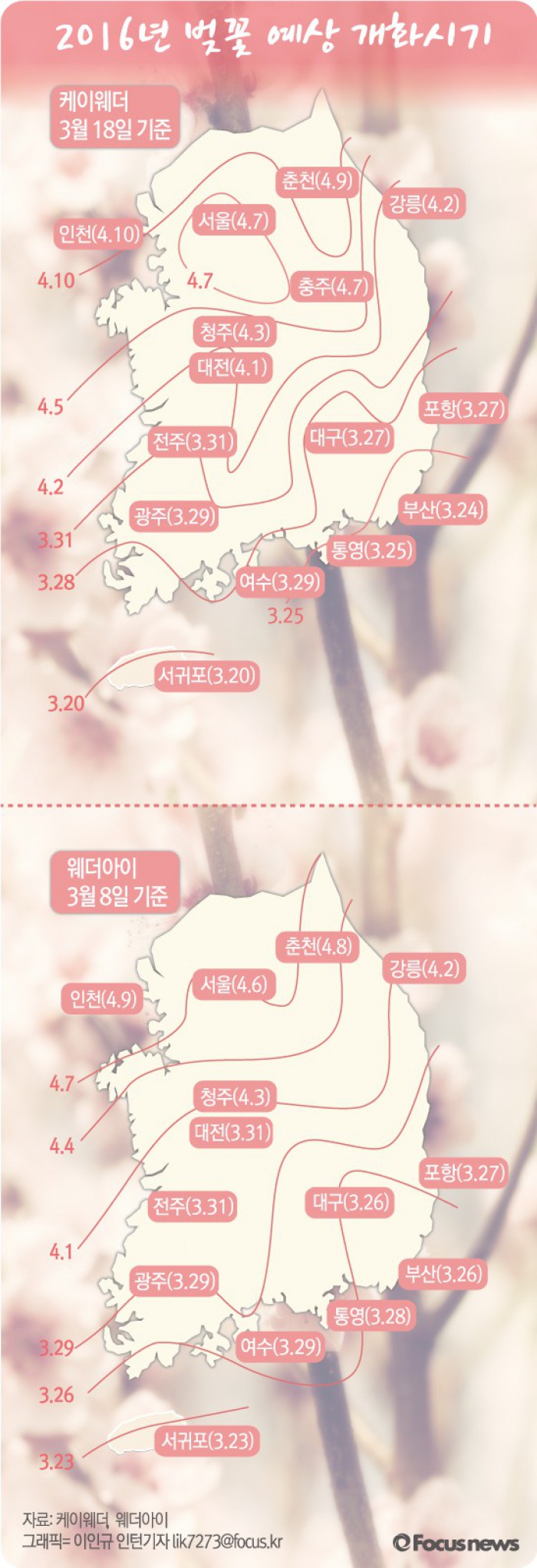 | △ [그래픽] 2016년 벚꽃 예상 계화시기 |