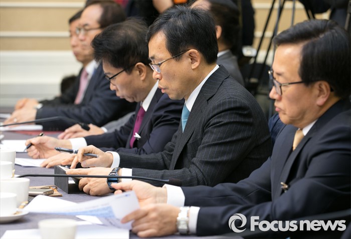 우리나라 산업용 전기요금은 2005년 이후 10년간 약 76%나 인상된 상황이다. 2014년 산업용 전기 판매액 기준으로 단순 계산할 경우 한전이 1%만 낮춰도 산업 전체에는 약 2,900억원 정도의 원가절감 효과가 기대된다.지난 9일 오전 서울 여의도 국회 귀빈식당에서 열린 경제활성화를 위한 민·당·정 간담회에 참석한 이승철(오른쪽 두번째) 전경련 상근부회장, 이동근(오른쪽 첫번째) 대한상의 상근부회장 등 참석자들이 새누리당과 정부측 발언을 듣고 있다. 2016.03.09 박동욱 기자