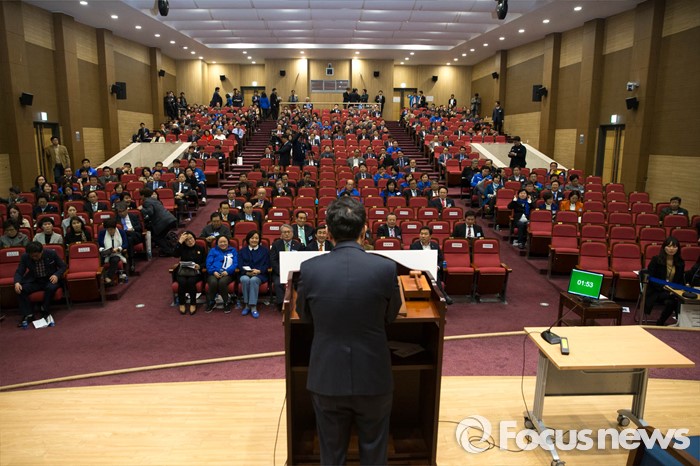 (서울=포커스뉴스) 비례대표 선정을놓고 김종인 비대위 대표가 당무를 거부하는 등 더불어민주당의 내홍이 계속되고 있는 가운데 22일 오전 서울 여의도 국회 의원회관에서 진행 중인 중앙위원회의에서 비례대표국회의원 후보자들이 정견발표를 하고 있다.
