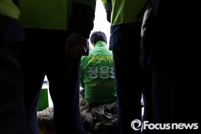 (서울=포커스뉴스) 국민의당에서 공천 탈락한 정용화 전 광주유니버시아드 조직위원회 부위원장이 22일 오전 서울 마포구 국민의당 당사 앞에서 경선 결과에 부당함을 호소하는 시위를 하고 있다.