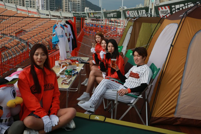 또 롯데는 외야 자유석 왼쪽 상단구역에 신규좌석인 콜핑 글램핑존을 설치, 운영한다. 총 8구역으로 운영되는 텐트 한 동에 6인 기준 15만원이다.