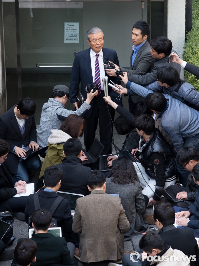 (서울=포커스뉴스) 김종인 더불어민주당 비상대책위원회 대표가 비대위 회의에 참석하기 위해 22일 오후 서울 종로구 구기동 자택을 나서며 취재진 질문에 답하고 있다.