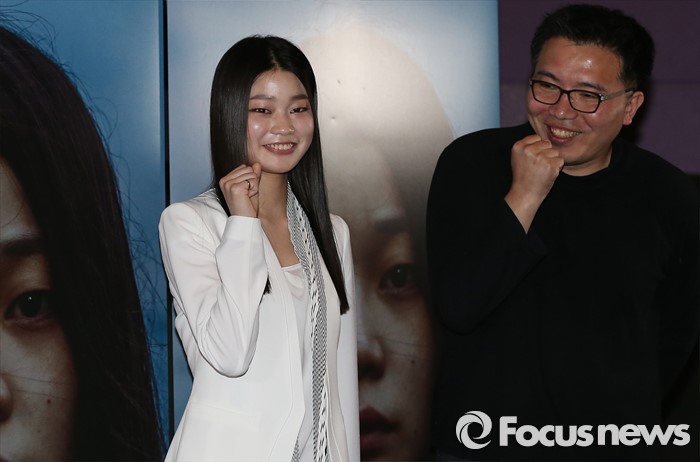 (서울=포커스뉴스) 22일 오후 서울 성동구 왕십리 CGV에서 열린 영화 '스틸 플라워' 언론시사회에 참석한 배우 정하담(왼쪽)과영화감독 박석영이 취재진에게 질문을 받고 있다.