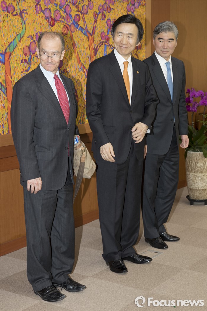 (서울=포커스뉴스)대니얼 프리드(왼쪽부터) 미 국무부 재정책조정관, 윤병세 외교부 장관, 성김 미 국무부 대북정책특별대표가 22일 오후 정부서울청사 별관 외교부에서 만나고 있다.