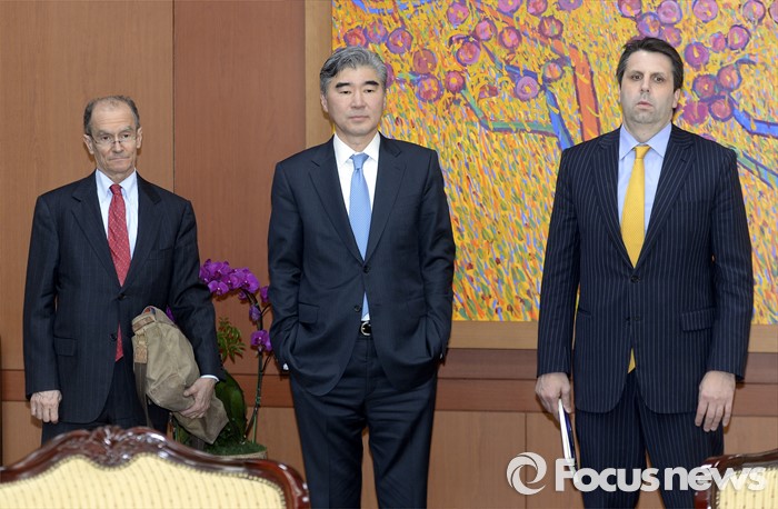 (서울=포커스뉴스) 22일 오후 서울 종로구 외교부 청사에서 성김(가운데) 미 대북정책 특별대표, 대니얼 프리드(왼쪽) 제재정책조정관, 마크 리퍼트 주한미국 대사가 윤병세 외교부 장관과 접견에 앞서 생각에 잠겨 있다.
