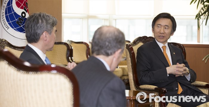 (서울=포커스뉴스) 윤병세 외교부 장관이 22일 오후 서울 종로구 외교부에서 대니얼 프리드 미 국무부 제재정책조정관, 성김 미 국무부 대북정책특별대표를 만나고 있다.