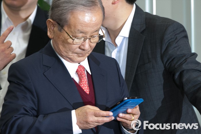 (서울=포커스뉴스) 강봉균 새누리당 공동선대위원장이 23일 오전 서울 여의도 국회에서 열린 최고위원회의에 참석하며 휴대폰을 보고 있다.