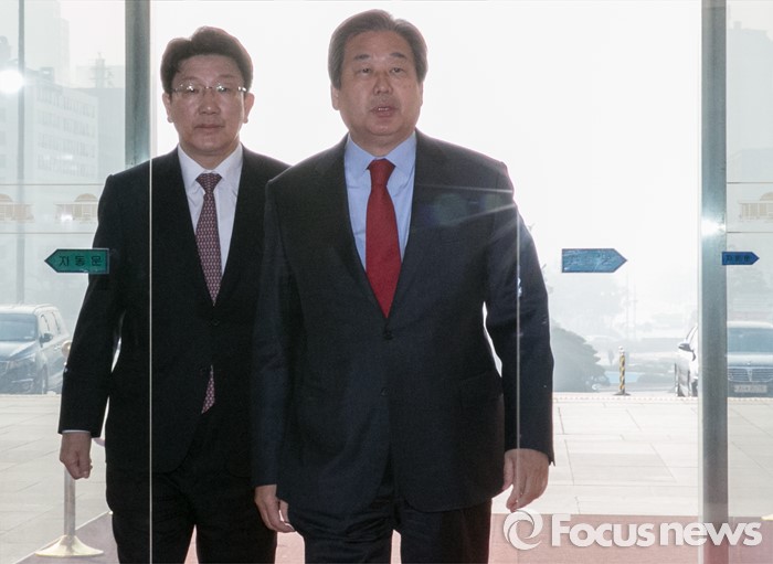 (서울=포커스뉴스) 김무성(오른쪽) 새누리당 대표와 권성동 전략기획본부장이 23일 오전 서울 여의도 국회에서 열리는 최고위원회의에 참석하고 있다.