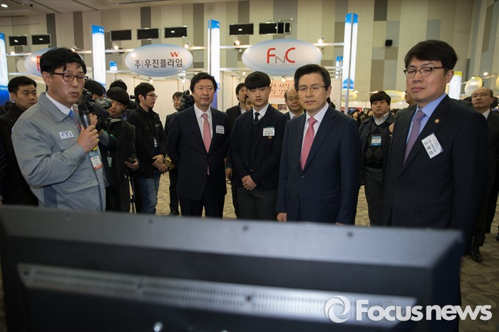 (고양=포커스뉴스) 23일 오전 경기도 고양시 킨텍스 제2전시장에서 열린 2016 대한민국 고졸인재 잡 콘서트(Job Concert)에서 황교안 국무총리가 참석해 부스 담당자의 설명을 듣고 있다.