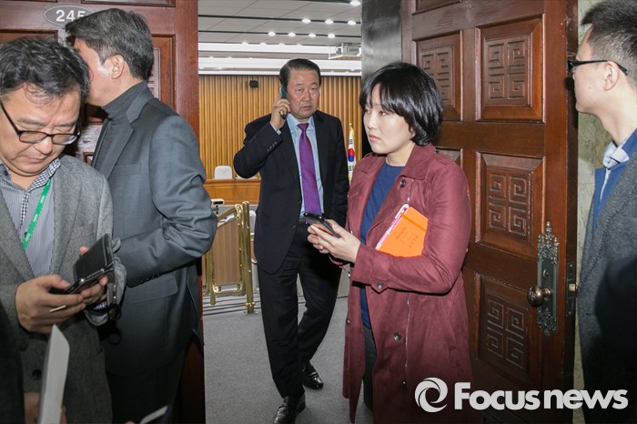 (서울=포커스뉴스) 박주선(가운데) 국민의당 최고위원이 23일 오전 서울 여의도 국회에서 열린 비공개 최고위원회의를 마친 뒤, 회의장을 나서고 있다.