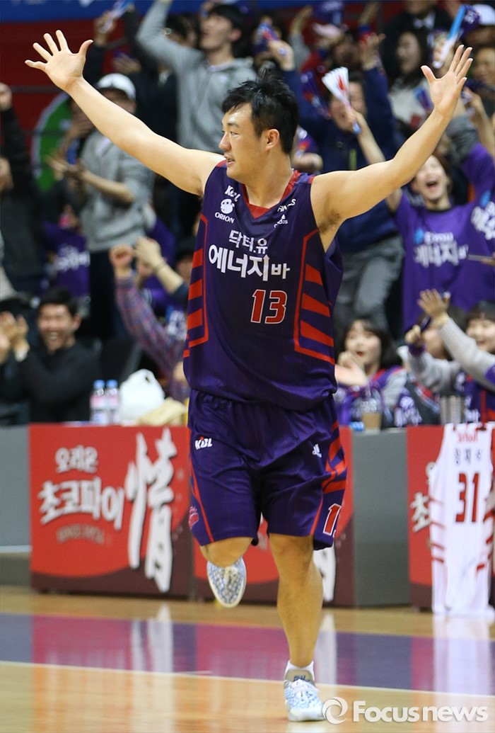 (고양=포커스뉴스) 23일 고양체육관에서 열린 2015-2016 프로농구 챔피언결정전 3차전 오리온-KCC경기에서 오리온 김동욱이 3점슛을 성공시키고 두 손을 쳐들며 환호하고 있다.