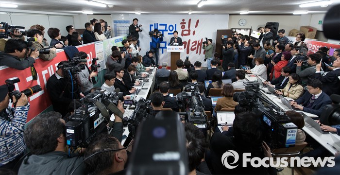 (대구=포커스뉴스) 유승민 의원이 23일 오후 대구 동구 용계동 사무소에서 새누리당 탈당 및 무소속 출마 기자회견을 하고 있다.