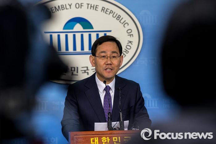 (서울=포커스뉴스) 20대 총선에서 새누리당 공천을 받지 못한 주호영(대구 수성을) 의원이 24일 오전 서울 영등포구 국회 정론관에서 무소속 출마 발표를 하고 있다.