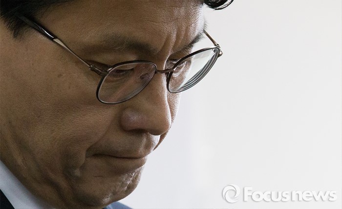 (인천=포커스뉴스) 새누리당을 탈당한 윤상현 의원이 24일 오전 인천 남구 지역구 사무실에서 무소속 출마 선언 기자회견 중 생각에 잠겨 있다.