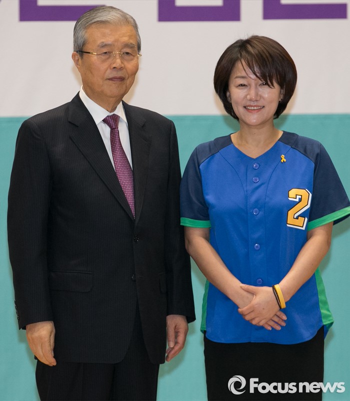 (서울=포커스뉴스) 김종인(왼쪽) 더불어민주당 비대위 대표가 24일 오전 서울 여의도 국회에서 공천장 수여식에 참석해 이재정 비례대표 후보와 기념촬영을 하고 있다.