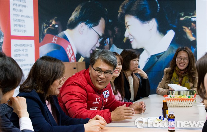 (대구=포커스뉴스) 이재만 예비후보(대구 동구을)가 24일 오후 대구 동구 방촌동의 선거사무소에서 지지자들과 만나 이야기를 나누고 있다.