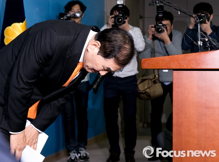 (서울=포커스뉴스) 새누리당을 탈당한 이재오 의원이 24일 오후 서울 여의도 국회 정론관에서 20대 총선 무소속 출마 기자회견을 마친 뒤 인사하고 있다.